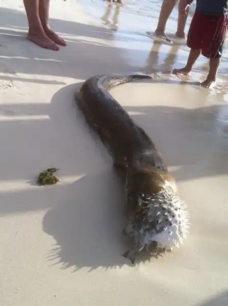 На Каймановых островах выбросило на берег хищника, который пытался полакомиться рыбой.