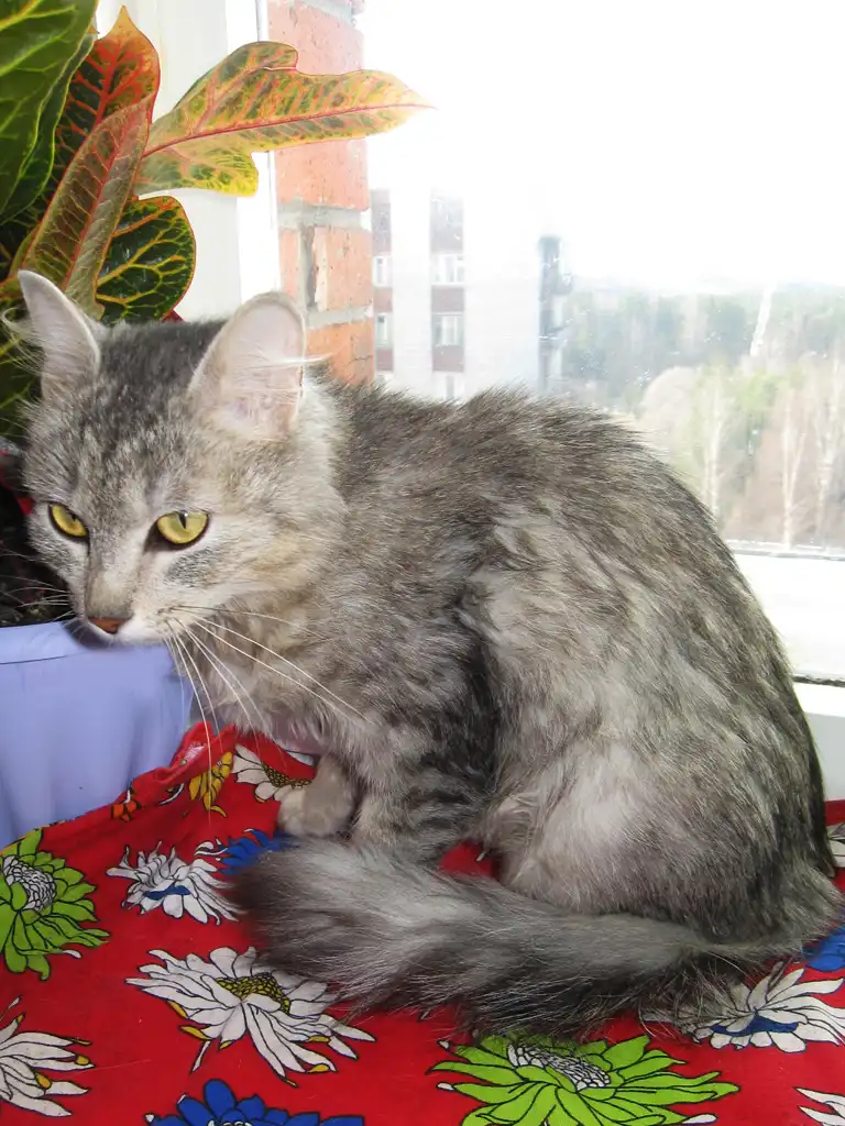 Шёрстка у неё мягкая, пушистенькая, роскошный хвост, красивые глаза, которые меняют свой цвет в зависимости от освещения.
