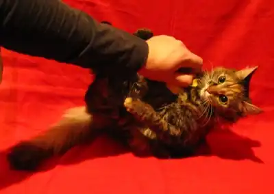 Мышка очень-очень любит бегать, прыгать и охотиться на игрушки. Ей нравится, когда её чешут под щёчкой, но эта абсолютно не требующая ласки кошка. Играть - да, ластиться - совсем не обязательно.