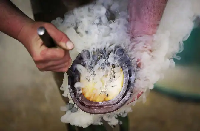 Подковка лошадей. В казармах Гайд-парка в Лондоне готовятся к торжествам в июне 2012, посвященным «бриллиантовому» юбилею своего пребывания на престоле Королевы Елизаветы II.