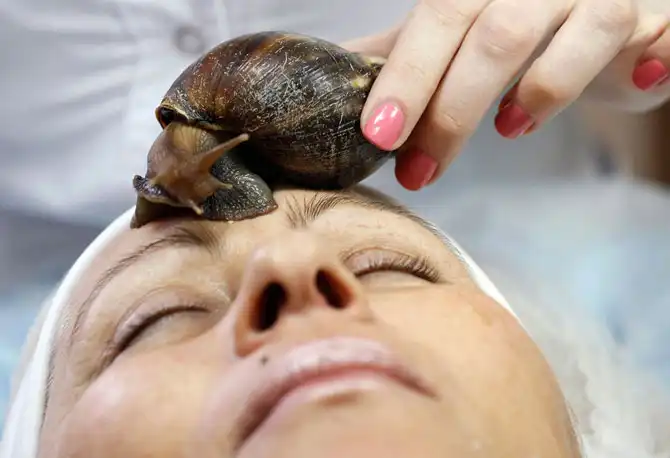 Лечебно-косметический массаж в салоне красоты в городе Красноярск, Россия, 23 марта 2012. Улиткотерапия — это особая процедура, суть процедуры заключается в регенерации кожи, которой способствует массаж улитками. От 3 до 7 улиток помещаются на область лица, шеи, или любой другой участок кожи.