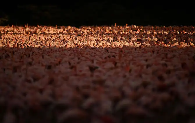Тысячи розовых фламинго на озере Найваша, Кения, 2 мая 2012.