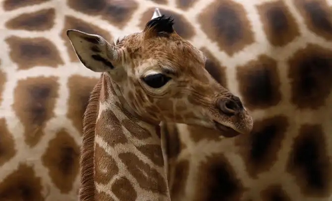 В пражском зоопарке средствам массовой информации представили представили нового постояльца — 6-дневного жирафа Ротшильда, 17 февраля 2012.