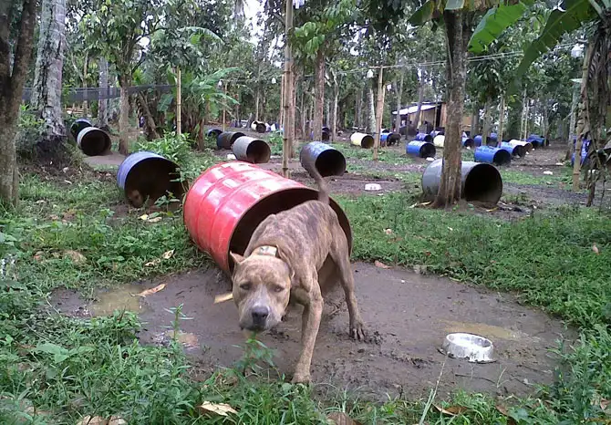 На юге от Манилы (Филиппины) найдены и спасены 300 бойцовских собак, которые были прикованы цепями к старым железным бочкам, 31 марта 2012. Их использовали в собачьих боях.