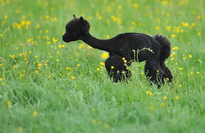 Альпака — домашнее парнокопытное животное — после стрижки, австрийская провинция Зальцбург, 29 апреля 2012. Эту процедуру делают каждый год весной, чтобы облегчить животным жизнь жарким летом. К зиме у них вырастет новая теплая шубка.