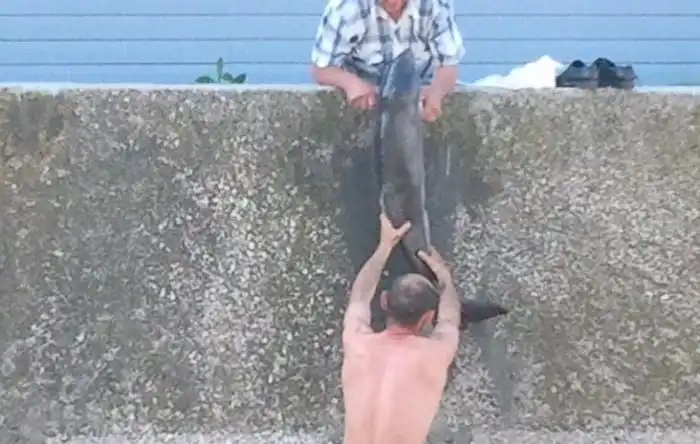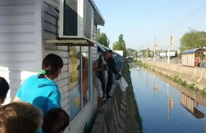 Жители Керчи, Украина, недавно могли наблюдать очень интересное и захватывающие зрелище. Мужчина спасал маленького дельфина, который не понятно каким образом, очутился в реке Мелек-Чесме. Малыша вытащили, он был ранен. Мужчина взял его на руки, поймал такси и отправился к берегу моря для того, чтобы отпустить дельфиненка.