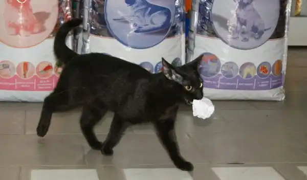 Да, это те самые два уже не котенка, которые были подобраны зимой с запиской в сумке. Обе девочки внешне были как две капли воды, всё время вместе, где одна - там и другая. Перенесли инфекционное заболевание (это, видимо, была причина отправить их на улицу в мороз), сейчас здоровы, но последствия остались: шаткая координация, потрясывание головой, что обеим девочкам не мешает бегать, прыгать, играть и веселиться. У одной появилось белое забавное пятнышко на морде и внизу живота, теперь они отличаются внешне, но всё также вместе, поэтому отдаются В ОДНИ руки.