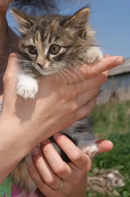 За городом, в 15-ти минутах езды - родились два котенка в хозяйстве. Животные беспризорные, никому не нужны, содержатся неудовлетворительно...