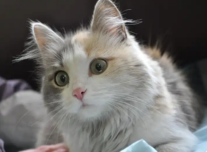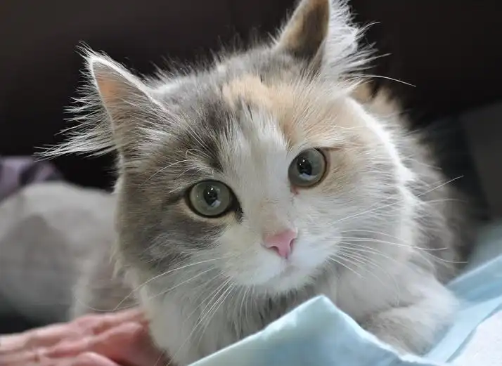 Глория - очень красивая кошечка черепахового окраса, бело-голубо-кремовая, с большими, выразительными глазками и очень милой мордочкой, пушистая, крупная, с эксклюзивными кисточками в ушках. Была найдена под крыльцом жилого дома. Сделана операция по ушиванию грыжи и одновременно стерилизация. Очень ласковая, любит людей, старается находиться рядом с человеком. Питается готовыми кормами, лоток хорошо знает, с другими животными дружит. На фото Глория еще грязная, сейчас она помытая, очень красивая. К сожалению, новых фото пока нет.