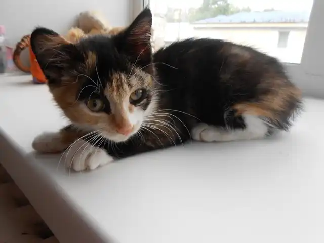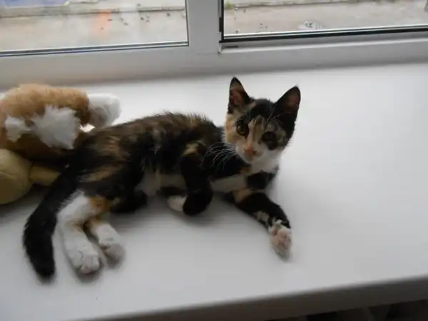 Подобрала котенка, возраст около 3-ех месяцев. Девочка. Она бегала возле дома и плакала, во дворе подтвердили, что ее выкинули.