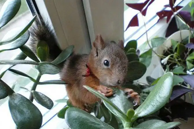 Ответа долго ждать не пришлось: сначала из кармана пиджака показались мохнатенькие кисточки ушей, потом блестящие глазенки, еще мгновение — и забавная белочка оказалась на плече у молодого человека.