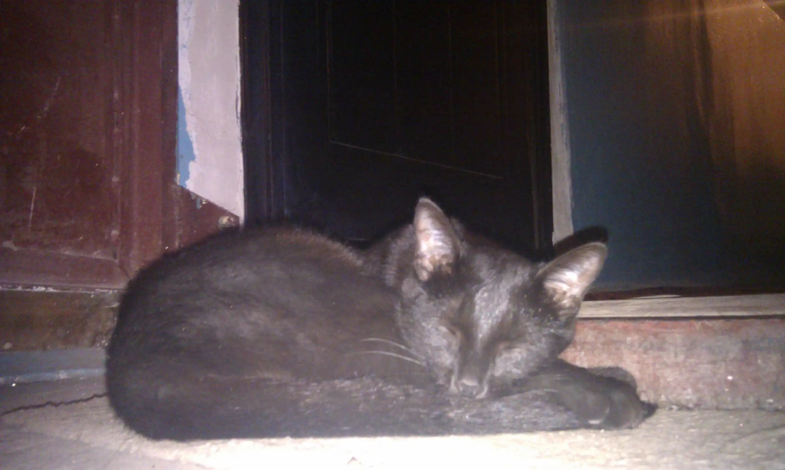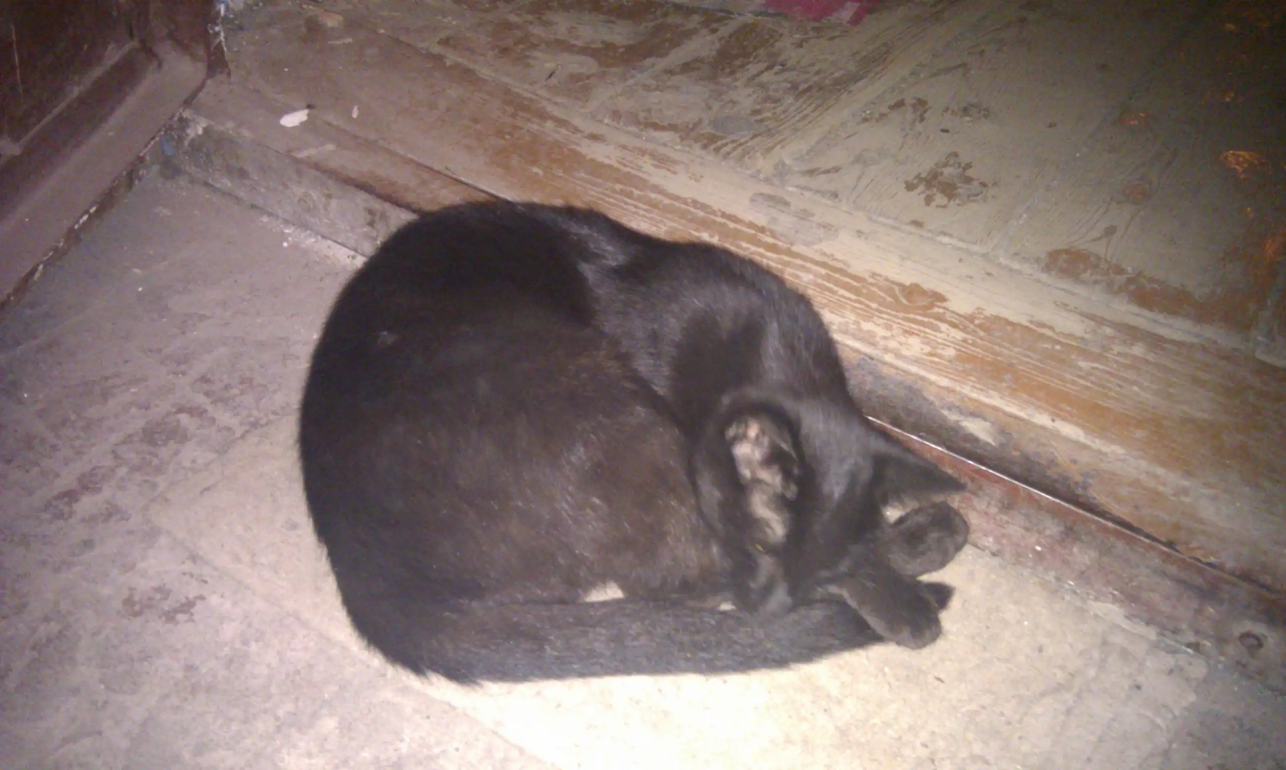 Найдена черная кошечка. Живет в подъезде по адресу Осипенко 31а (кировский район). Очень добрая и ласковая, видимо, домашняя, мирно спит на половике. Взяла бы себе, но одного уже подобрала, кошка очень красивая. очень ее жалко. 8-952-883-55-87, 8-952-880-34-57
