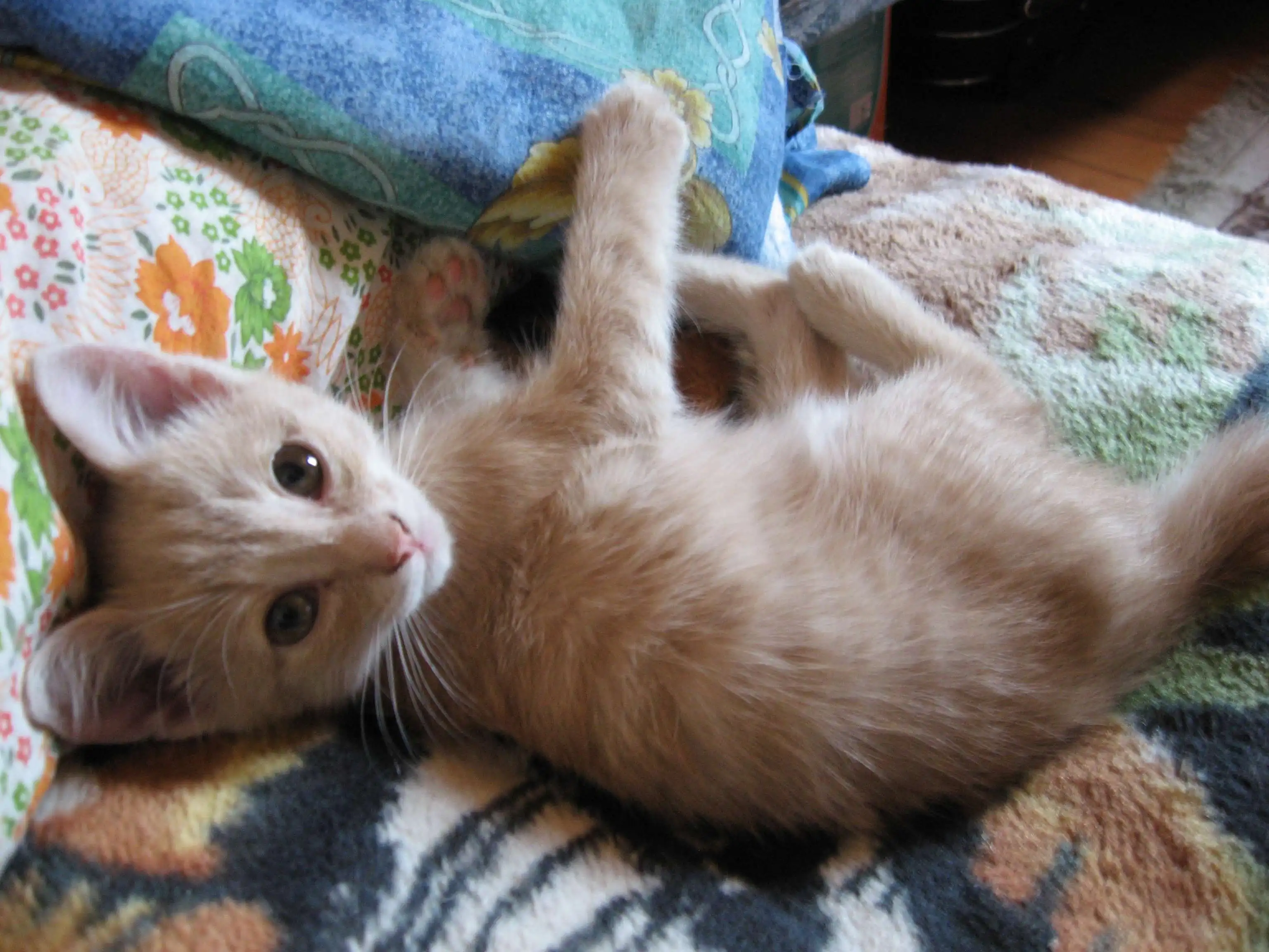 Песочно-персиковый котик игривый и озорной, любит смотреть на дождь и