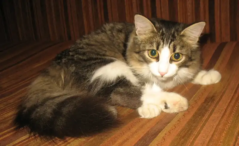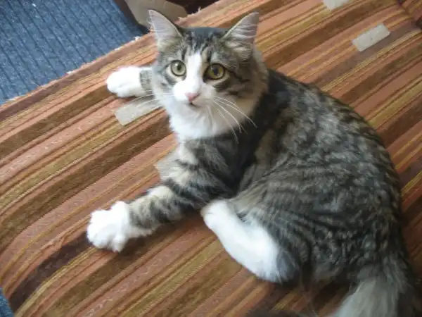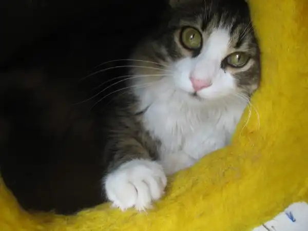 Просим принять в семью весёлую кошку Мусю (д.р.14 декабря 2011 г.) по причине аллергии на её пушистость мальчика 9 лет. Игривая, красивая, приучена к тазику (тазики прилагаются).