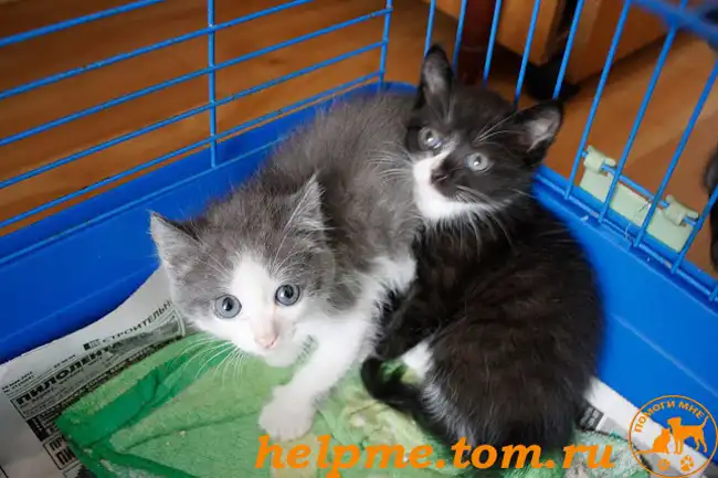 В подвале рынка была найдена кошка с тремя которебёнками (одного пристроили сразу). Котейки явно были домашние, чистенькие, упитанные, в лоток пошли сразу. Чёрненькая - девочка, игривая и беззаботная. Белый с серым - мальчик, более серьёзный, на взрослых кошек пытается строжиться)))
