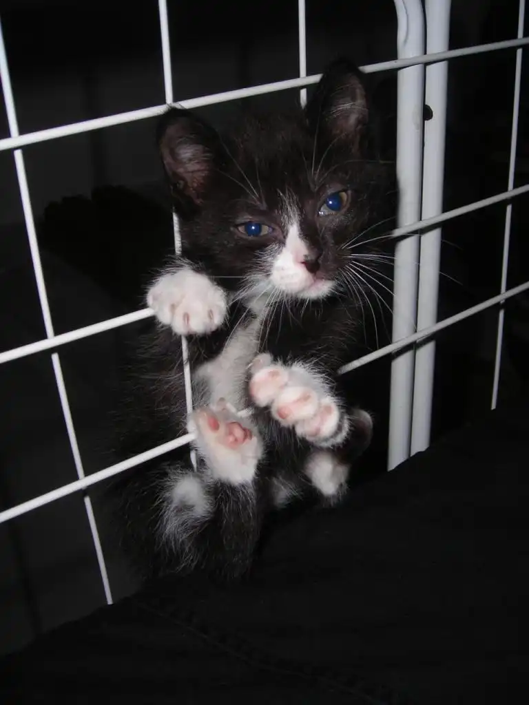 В подвале рынка была найдена кошка с недавно рождёнными котятами. Это семейство явно были домашним, чистеньким, упитанным, котята в лоток пошли сразу. Двоих уже пристроили, сейчас осталась чёрная девочка, с которой нам труднее всего было расстаться из-за её невероятно милого и контактного поведения. Она очень игривая и беззаботная!