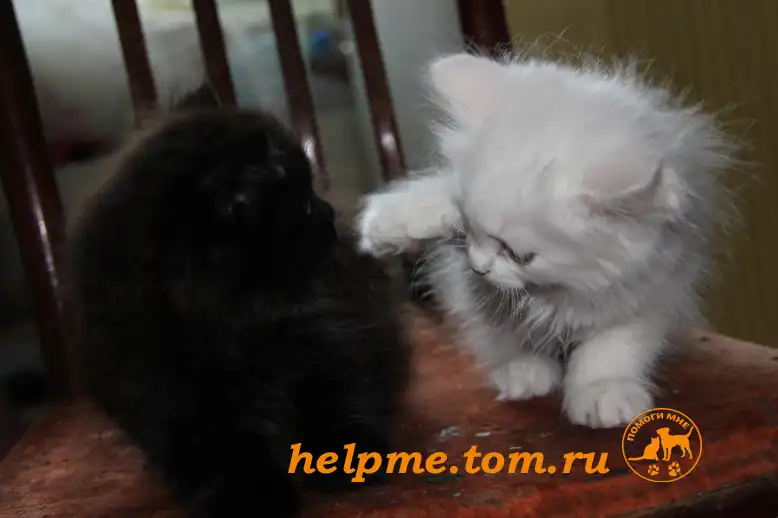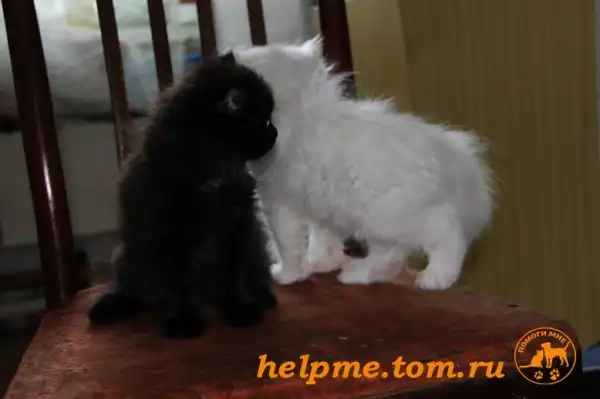 Одна девочка насыщенно-коричневого цвета, очень спокойная и тихая, вторая девчонка - белая пушишка с маленьким чёрным пятнышком на голове, активна и энергична.