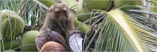 Кокосовые фермеры наловчились тренировать обезьян забираться на пальмы и трясти, пока все плоды не окажутся на земле. Кроме того, что обезьяны обходятся дешевле, чем люди, у них и производительность гораздо выше – человек может собрать до сотни кокосов в день, обезьяна – 500-800.