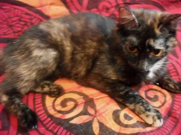 Котятам 1 месяц. Кошечка черно-рыжая игривая, примерно 10 месяцев.