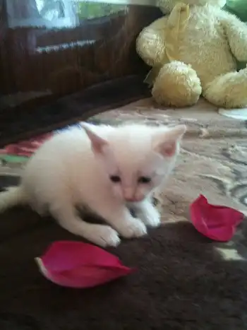 Отдадим месячных котят,мамку подобрали с улицы в конце апреля, 2 белых мальчика,одна девочка - трехцветка,одна девочка - дымчатая.Очень Срочно,тк в конце недели планируем переезд.