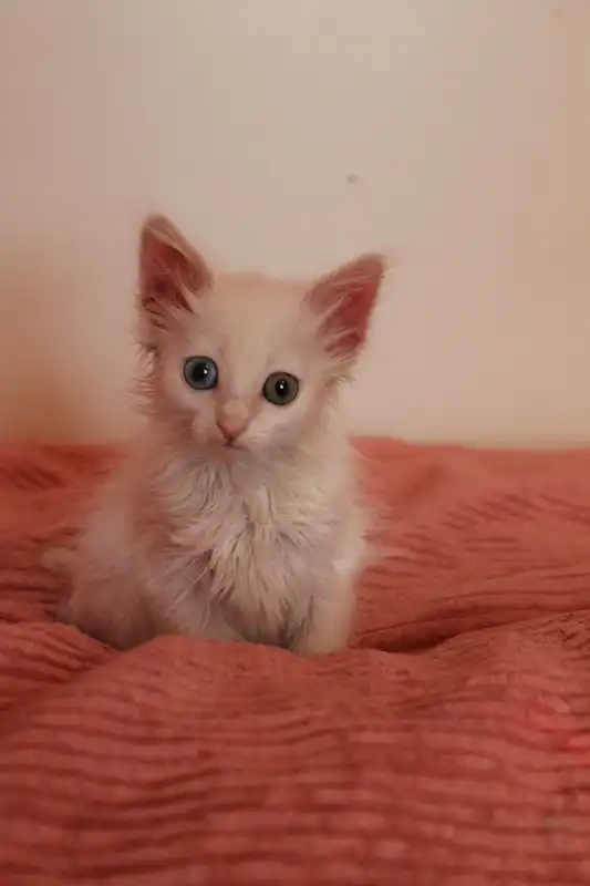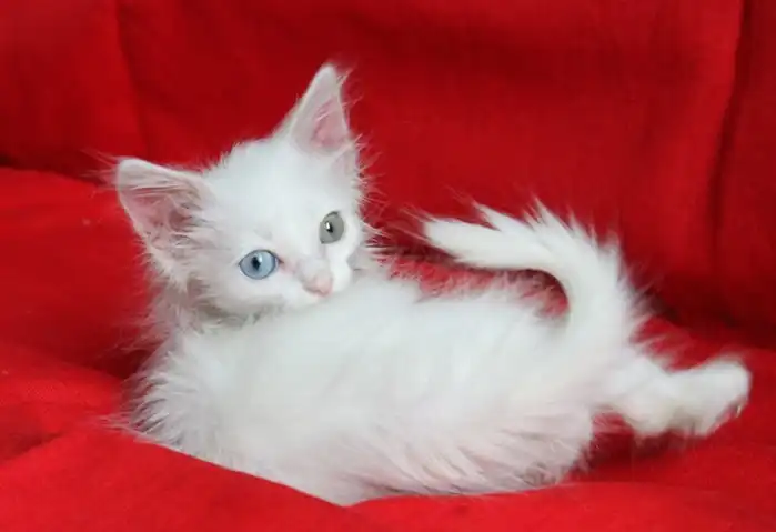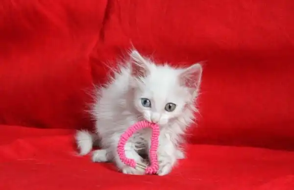 Котенка подобрали в подъезде всего в мазуте, отмывали несколько раз, чтоб котенок из серого с черным превратился в белого пушистого. Будет скорей всего полупушистой, похожей на ангору. Вроде девочка. Возраст около 1,5 месяцев. Активный, игривый котенок, ходит в лоток, кушает корм для котят. От паразитов избавлена. Отдается только при условии стерилизации.