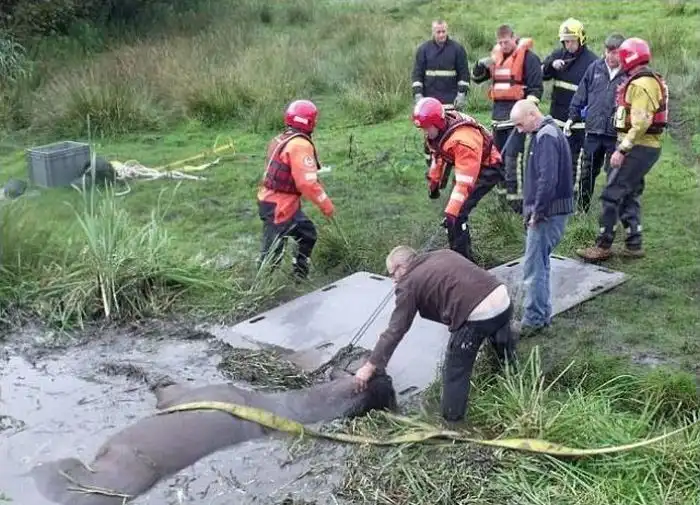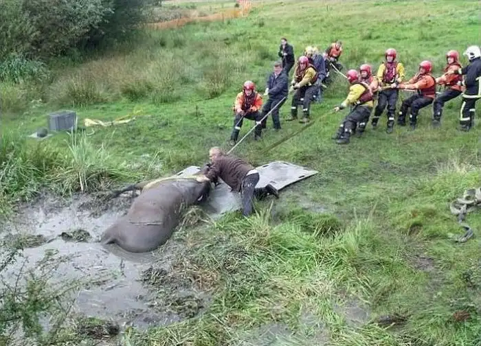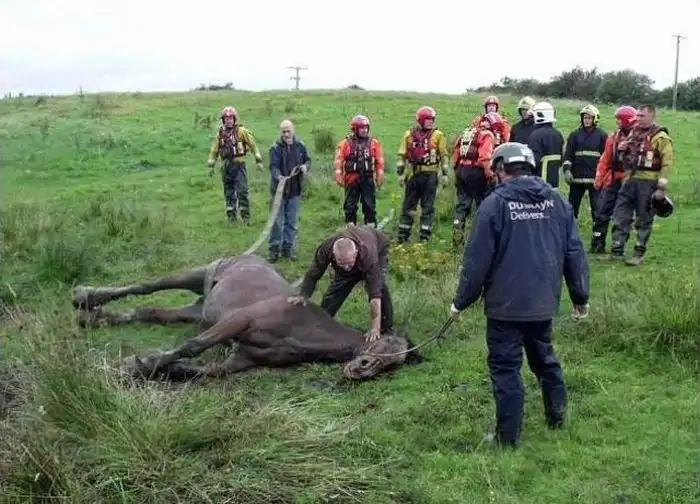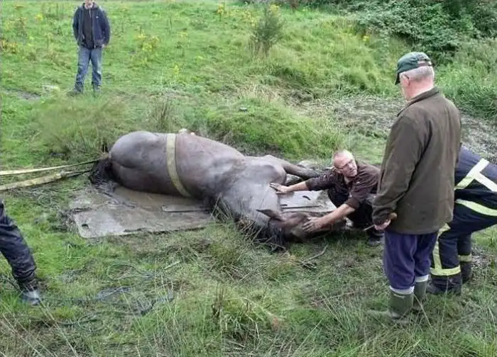27-летняя лошадь провела несколько часов в ловушке из грязи и глины.