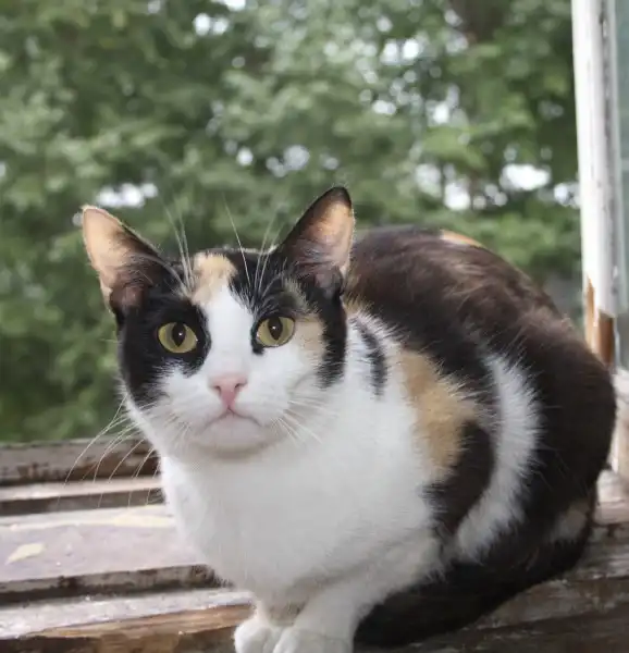 Ищет дом строгая на вид, но очень добрая по характеру кошечка. Прекрасно уживается с другими кошачьими. Издавна считается, что трехцветные кошки приносят счастье.