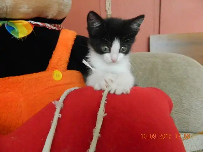 Ищут любящих хозяев котята: девочка пёстренькая и мальчик чёрно-белый. Возраст 1,5 мес. Были найдены в коробке в магазине, им тогда было 3 недели, но прошло время и они окрепли и стали красивыми крошками. С лотком проблем нет, ходят куда надо, из еды предпочитают натуральную еду или влажный корм. Имеют скидку на стерилизацию.