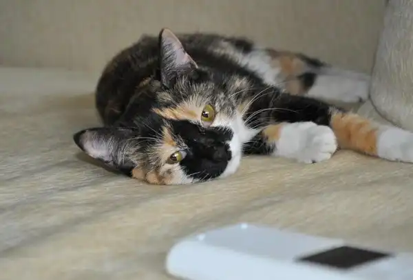 Красивая, трёхцветная кошечка. Возраст примерно 8 месяцев. Стерилизована. Немного робкая, в то же время ласковая. Любит поиграть, побегать с мышкой. В лоток ходит идеально (наполнитель). Кушает как проф. корм, так и натуральную еду. Отлично уживается с другими кошками.