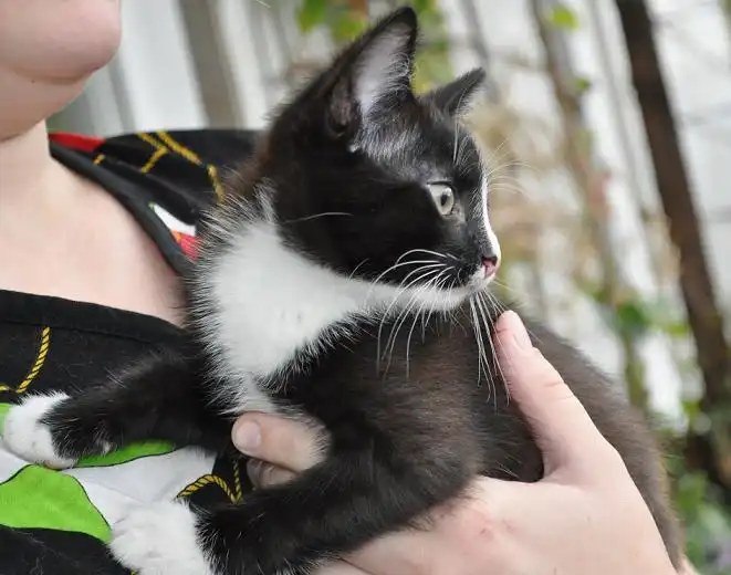 Котёночек-мальчик. Возраст ориентировочно 2 месяца. Найден в подъезде. Ласковый, игривый которебёночек, в добрые руки. Предоставляется скидка 50% на кастрацию по достижению нужного возраста.