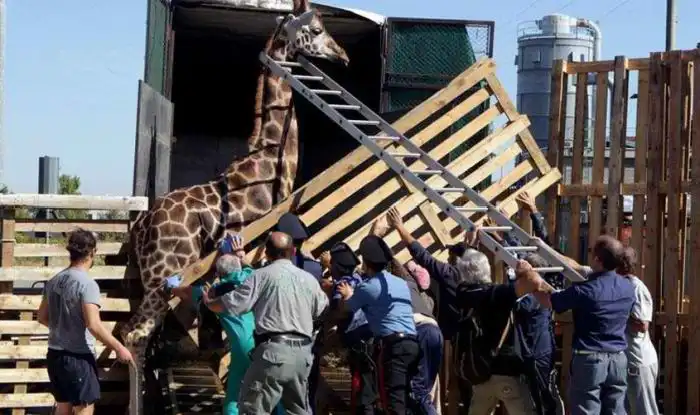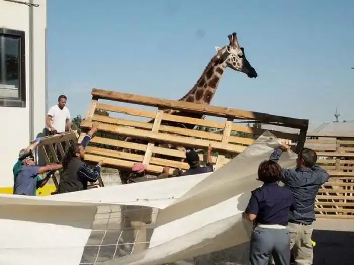 Но, к сожалению, сердце жирафа не выдержало, бедное животное погибло.
