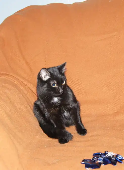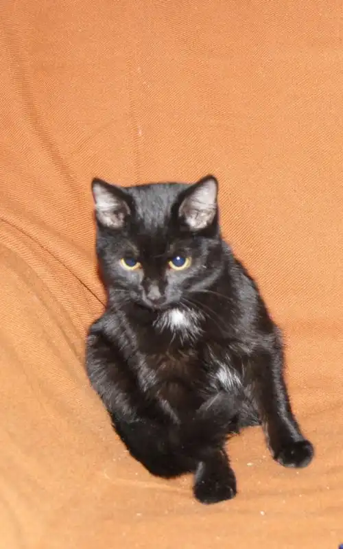 Маленькую черненькую кошечку Монику на передержку принесли ребятишки, нашли где-то с поврежденным глазом, он слезился и его почти затянуло. Сейчас глазик пришел в норму, выздоровел, кошечка кушает, играет, поет песенки, в туалет - только в лоточек. Моника маленькая, ладненькая, шерстка у нее мягкая, нежная, миленькая мордочка с очень коротеньким носиком (а фото не очень удачные). Кошке 5 месяцев, ей очень нужен дом и заботливые руки хозяев. 89539182539