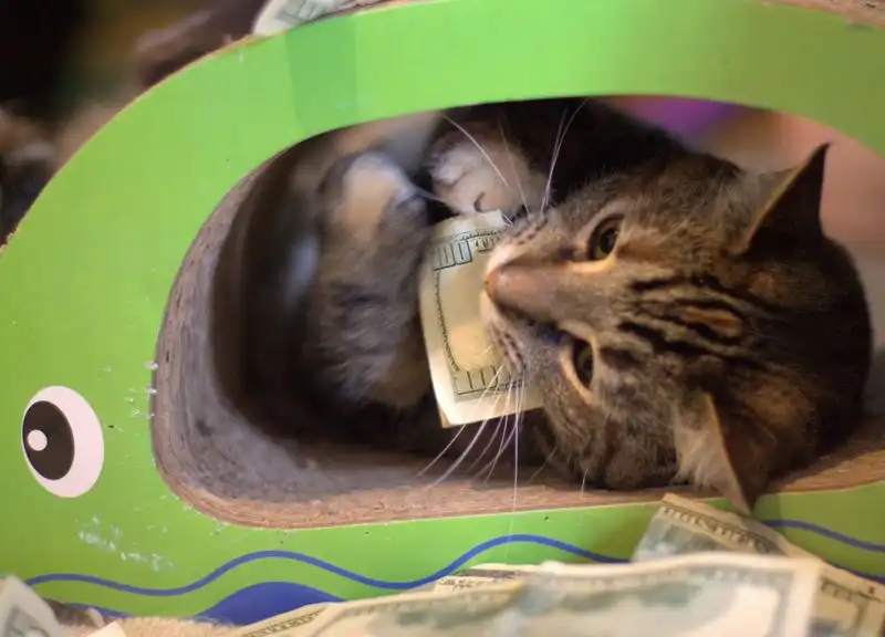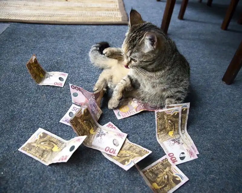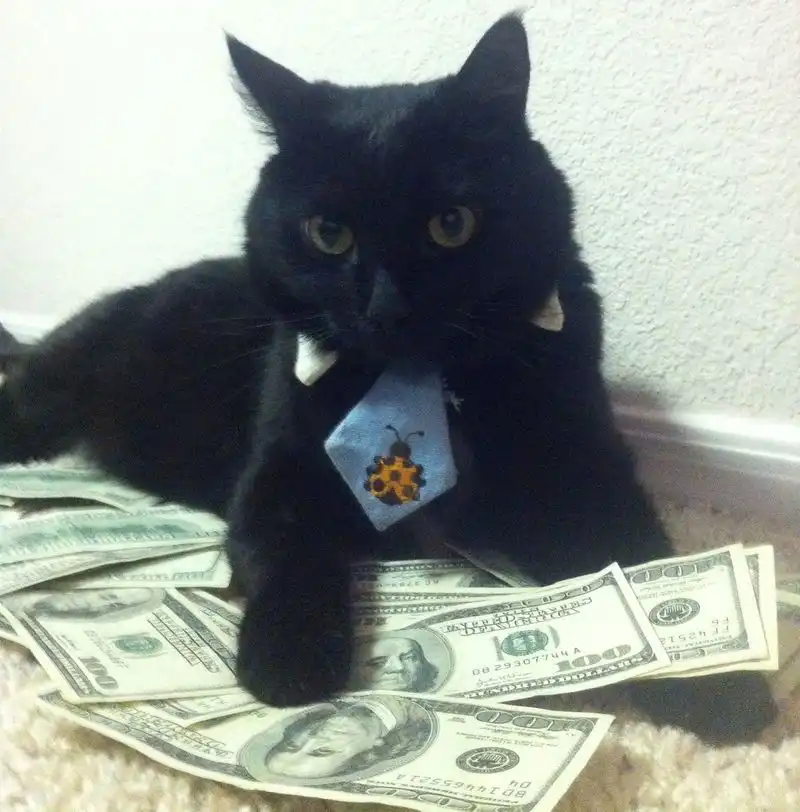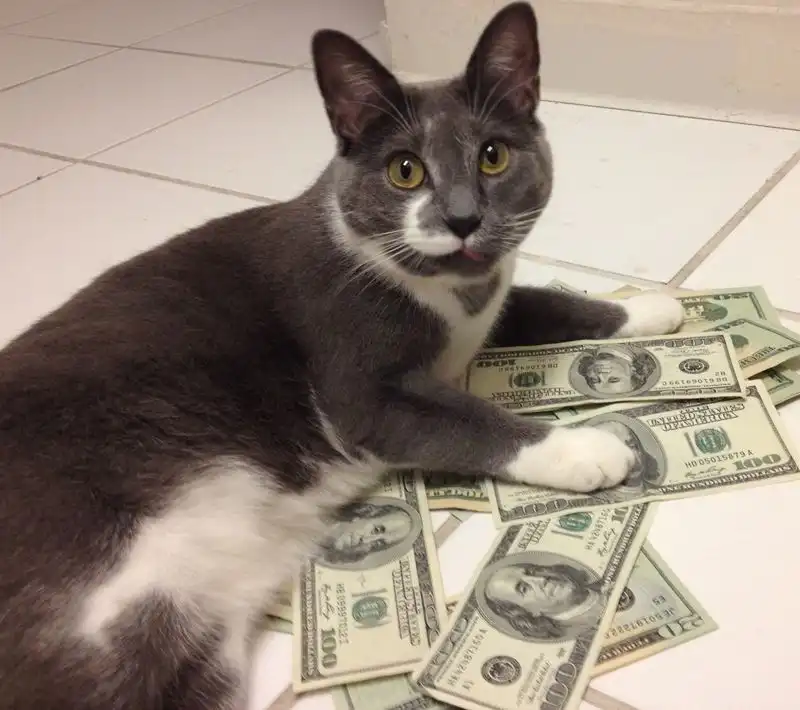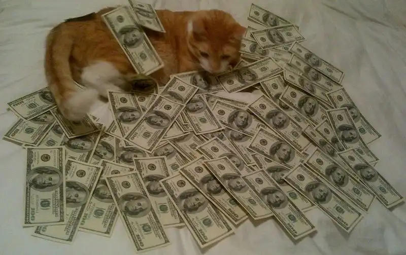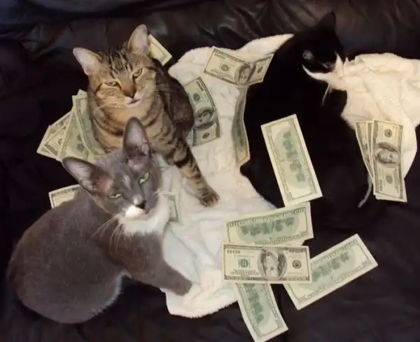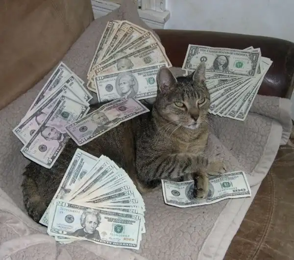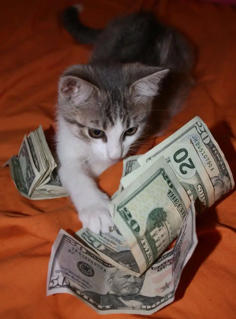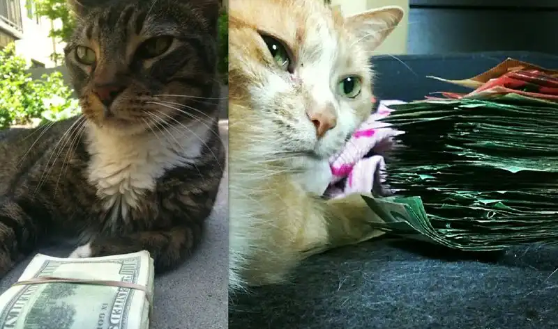 Коллекция фотографий на которых главными героями выступают коты любящие деньги.