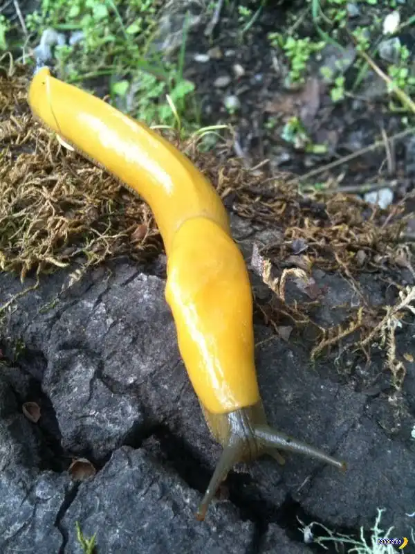 На это существо, которое называется банановым слизнем, смотреть вполне нормально, но трогать не каждый осмелится.