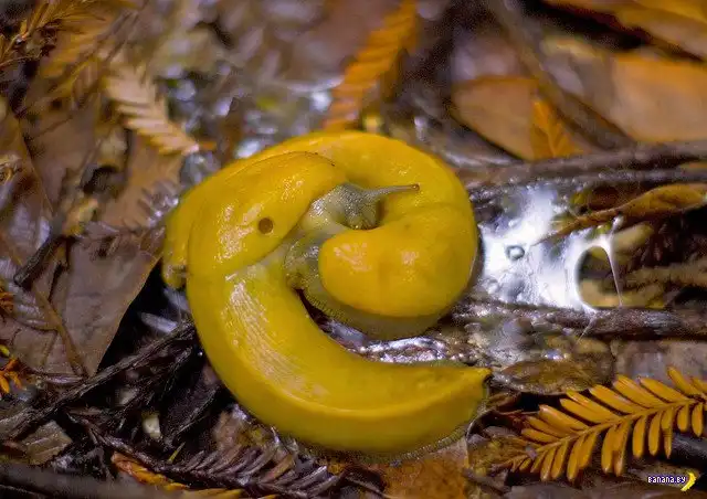 Любопытно, что мужские детородные органы у банановых слизней настолько длинные, что порой безнадежно запутываются. Тут уж бывшие любовники забывают о взаимных чувствах и стараются побыстрей отгрызть своей пастью-теркой гениталии партнера, ну или себе, если уж совсем туго. После такой неприятности они вынуждены до конца жизни довольствоваться ролью самки.
