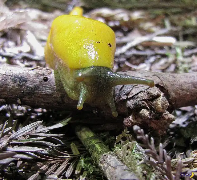 Банановые слизни — гермафродиты, то есть у них имеются и женские и мужские половые органы, которые шутница-природа расположила на голове. В принципе, они могут и сами себя оплодотворить, но предпочитают привлечь партнера. О готовности к размножению сообщает слизь с особым феромоном, которую оставляет после себя слизняк. Процесс двойного оплодотворения обычно происходит ночью и длится около 12 часов.