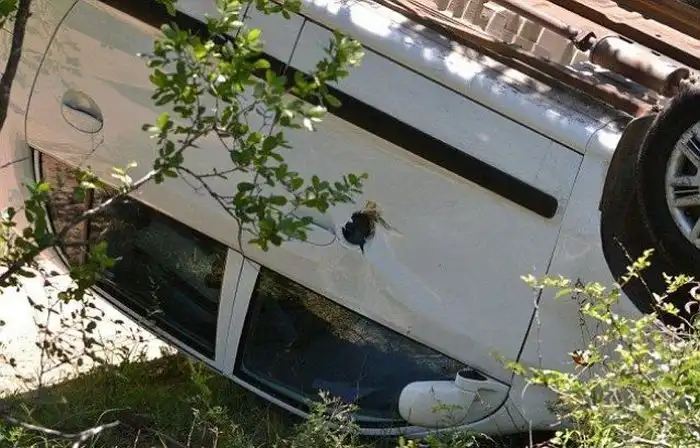 дверь автомобиля и с легкостью перевернул его на крышу!