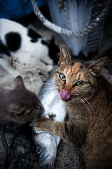 Тут живут сотни кошек, которым всегда перепадает рыба от местных рыбаков.