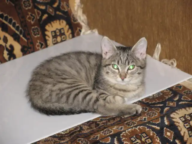Отдам котёнка,3,5 мес.Зовут Фикус, так как любит спать в цветке.Лоток знает.Игривый, ласковый.Кушает мясной фарш с рисом, но не брезгует хорошим сухим кормом.