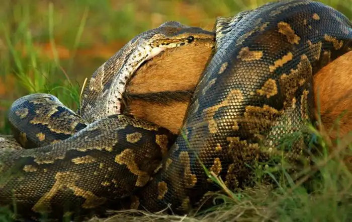 Эти шокируюшие кадры, на которых огромный питон заглатывает