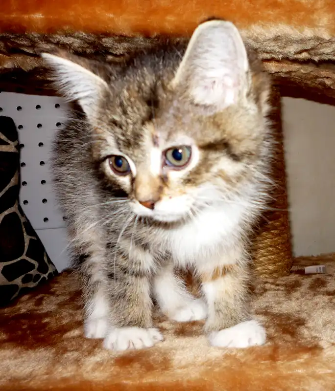Ищет ответственных хозяев девочка, 1, 5 мес. Эта малявочка была подкинута в подвал, откуда ее вовремя забрали добрые люди. Сейчас малышка, вымыта, накормлена, знает лоточек и хорошо кушает. Ветеринаром осмотрена, проблем со здоровьем не обнаружено. Отдается при условии стерилизации, по достижению соответствующего возраста, на которую предоставим льготу.