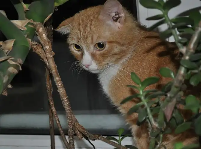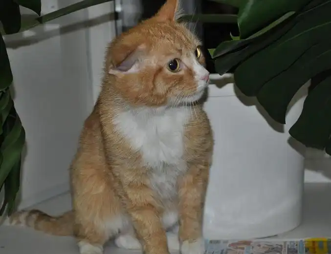 Клен - красивый рыжий котик с белым носиком и белой грудкой, ему около 2 лет. Жил в коридоре общежития. Не любит общества котов, и наверно неоднократно проявлял свой боевой характер, так как найден был весь в "боевых ранах" с раненым ухом. Сейчас ухо вылечено, но, к сожалению, оно изменило форму и повисло. Хотя котик нисколько не утратил своего обаяния. Он кастрирован, характер стал мягче и спокойнее. И все же предпочтительно ему жить в квартире одному. Питается готовыми кормами, лотком пользуется. Очень симпатичный, ласковый с людьми, самодостаточный котик.