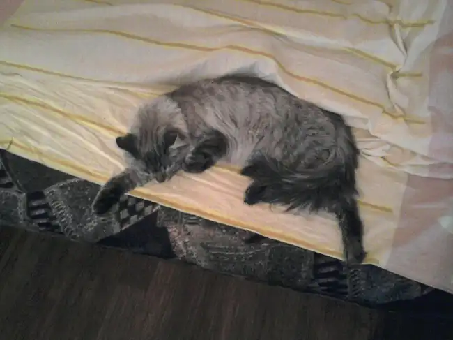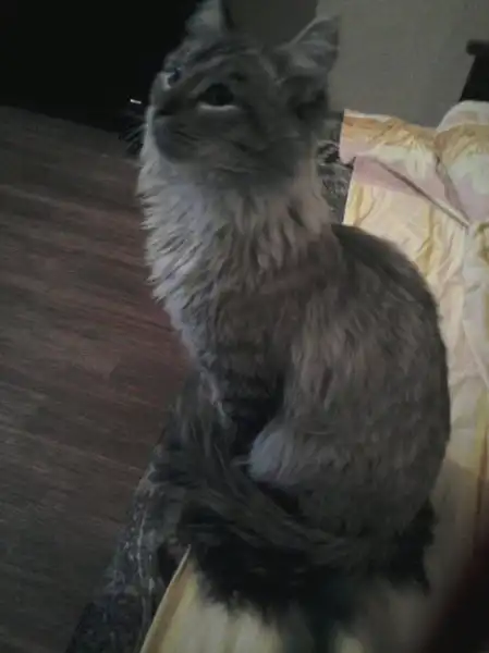 Взрослого кота мы подобрали в подъезде примерно 28 декабря. Его предыдущие хозяева оставили его в морозы в подъезде, он там прожил 3-4 дня. Вместе с ним в подъезд они выставили пакет с лотком, наполнителем для лотка, миской, сухим кормом и расчёской. Котику приблизительно год (может даже меньше, т.к. когда мы его подобрали у него резались дальние зубки и он не мог кушать). Кот чистый, похож на породу Мейн-кун. Добрый и ласковый кот, приучен к лотку.