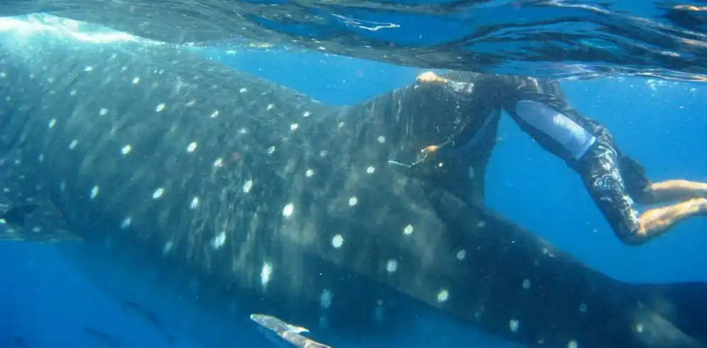 Дайвер в сравнении с китовой акулой