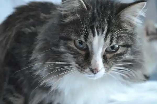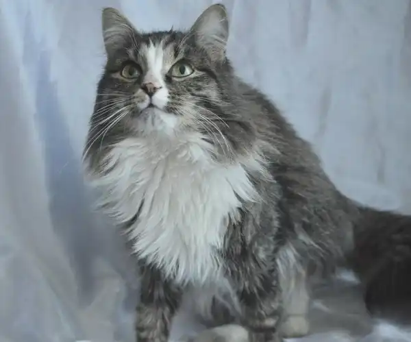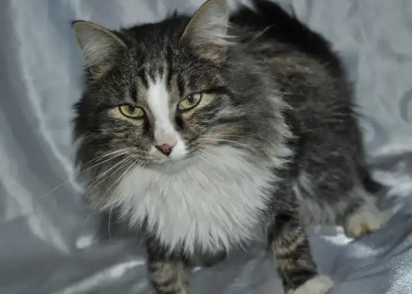 Яша - красивый пушистый полосатый котик с белой грудкой и в белых носках., похож на сибирского. Ему примерно 7-8 мес. Найден на улице в морозы, сидел на дереве возле банка. Очень ласковый, игривый котик, любит сидеть на ручках. Лотком пользуется, питается готовыми кормами. Имеет сертификат на скидку при кастрации.