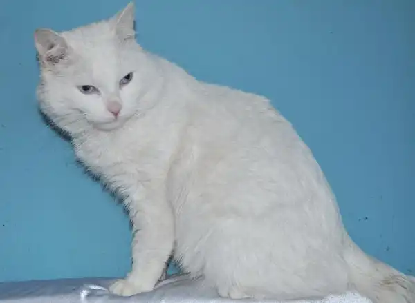 Ландыш - огромный белый кот, несмотря на свои большие размеры, очень ласковый и спокойный. Подкинут на ярмарку на рынке. Кот-философ, любит лежать где-нибудь повыше и наблюдать за происходящим. Создается впечатление, что он обо всем имеет свое мнение. Очень приятный кот, мягкий и ручной. Питается готовыми кормами, лотком пользуется. Лечится от ушного клеща. Имеет сертификат на скидку при кастрации.