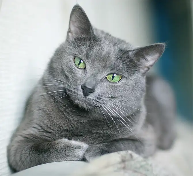 Одной из самых популярных короткошёрстных пород является русская голубая кошка.