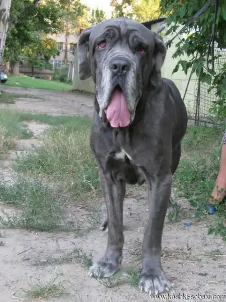 Отдаётся по семейным обстоятельствам кобель породы мастино неаполитана с родословной. Возраст 3 года, не кастрирован. Характер спокойный, знает основные команды. Фотография не его, но похож.