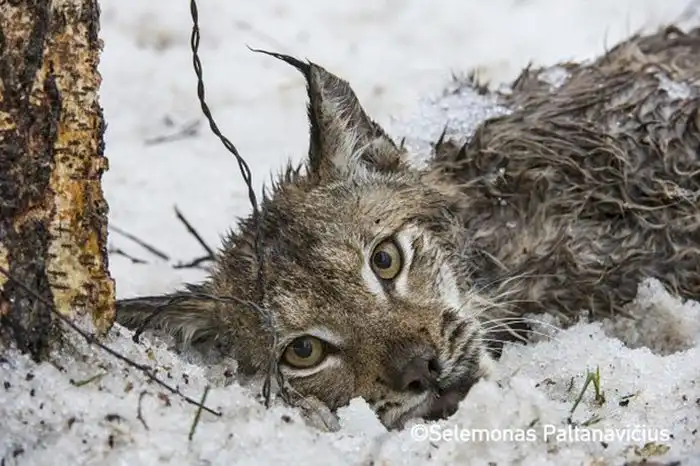 Несмотря на то, что рысь была очень слабой и едва дышала, она была готова защищаться.
