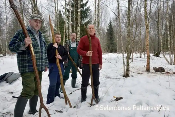 которыми прижимали зверя к земле и держали, пока снимали петлю.
